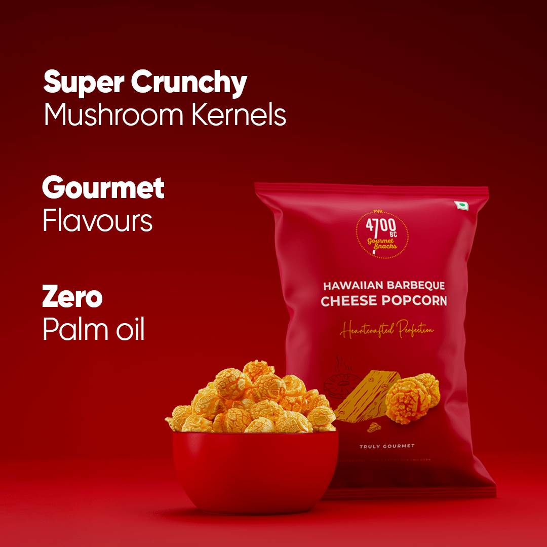 Indulge in 4700BC Gourmet Popcorn coated with our signature cheddar cheese and infused with a smoky Hawaiian barbeque flavour. A flavour like no other. Packed in our premium pouches which are convenient to carry and easy to use.