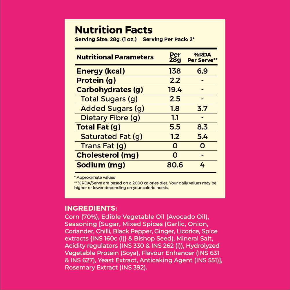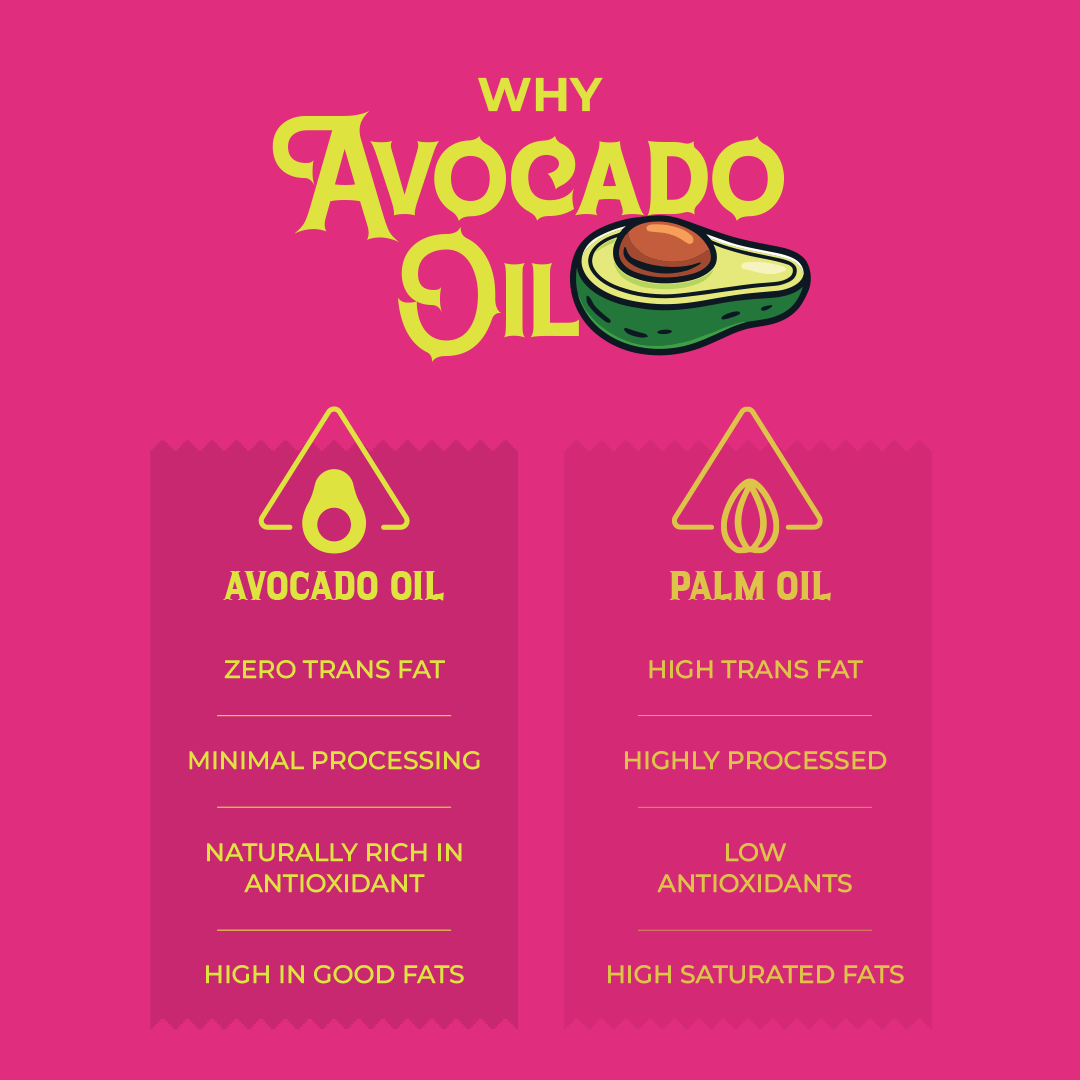- Made in Avocado Oil: A non-seed oil, naturally Rich in Antioxidants. It keeps things light and crispy