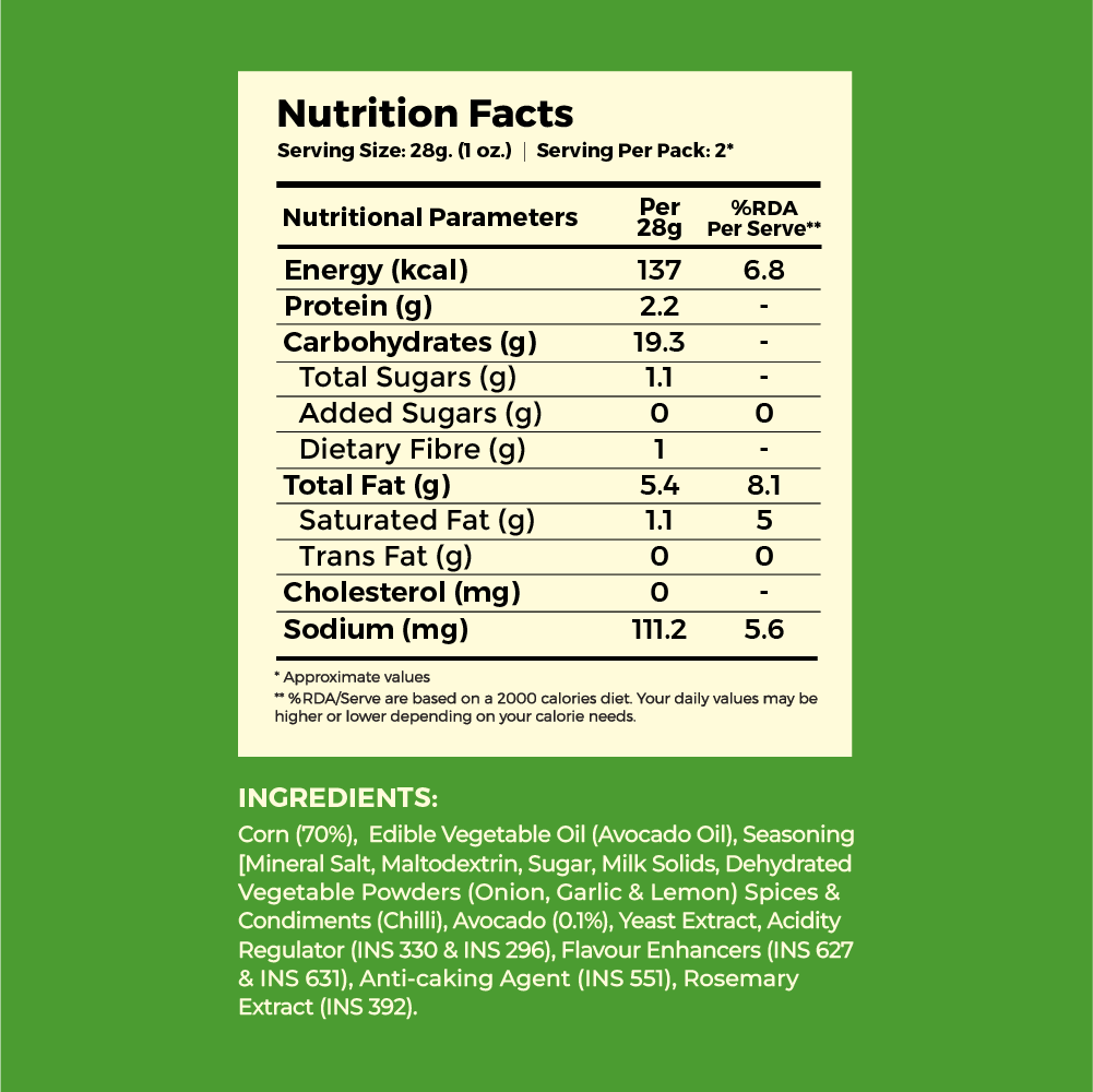 - Made in Avocado Oil: A non-seed oil, naturally Rich in Antioxidants. It keeps things light and crispy