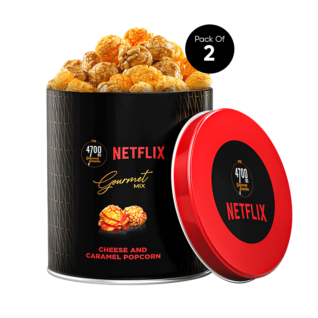 In this combo, you get 2 tins of 4700BC x Netflix Gourmet Popcorn, Cheese & Caramel.