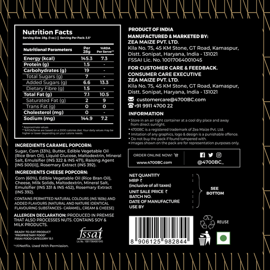 4700BC x Netflix, Gourmet, Cheese & Caramel Popcorn, Small Tin, 75g